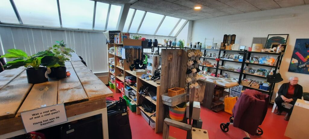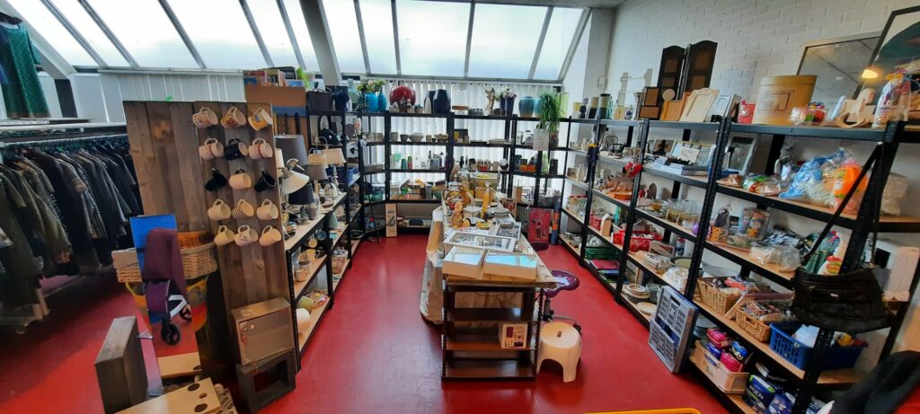 In onze winkel is voor iedereen wat te vinden. Kleding, textiel, speelgoed en schoenen mag u gratis meenemen als je donateur bent. Ook hebben wij een kleine verkoophoek waar je voor een klein prijsje decoratie en kleine huishoudelijke artikelen kan kopen. In deze verkoophoek hebben wij ook leuke cadeaupakketjes.